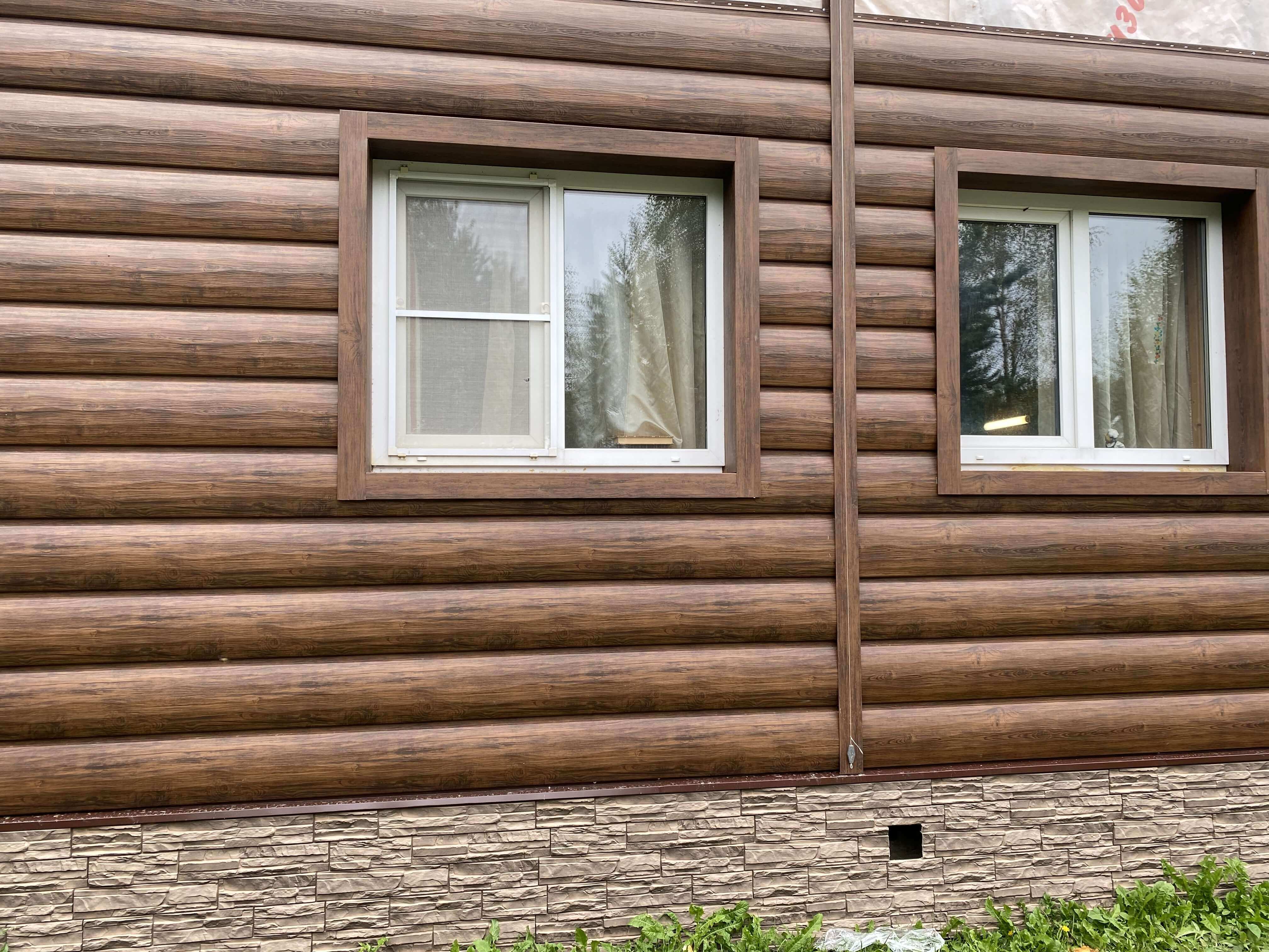 ЦАРЬСАЙДИНГ: металлический сайдинг Блок-Хаус 4Д одноволновый венец под рубленое бревно c тиснением короед! Фасад дома из металлосайдинга Бревно Рубленое 4Д внешне на 100% идентичен натуральному деревянному рубленому срубу, но при этом легче, крепче, дешевле и долговечнее!