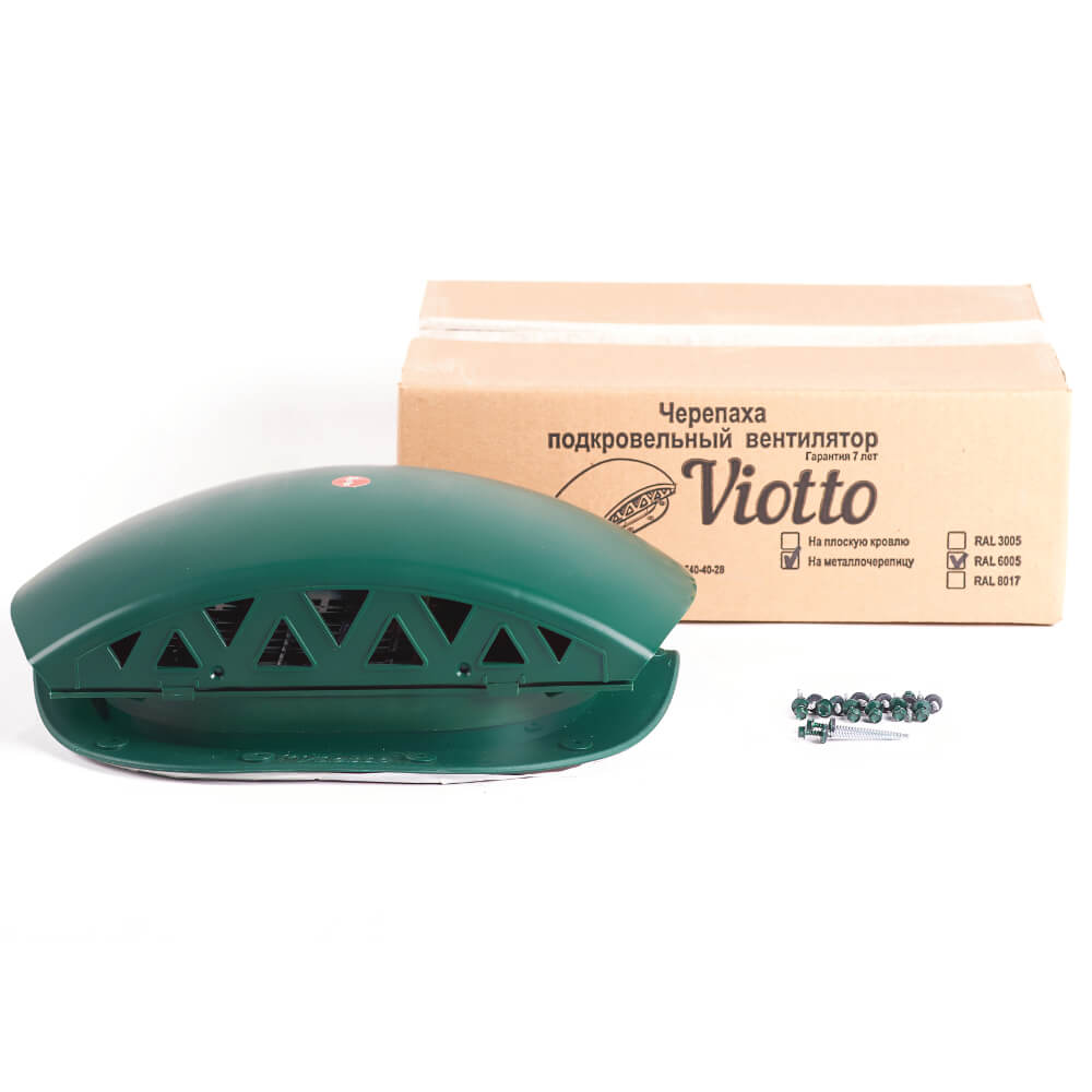 Подкровельный вентилятор "Черепаха" Viotto RAL 6005 Зеленый Мох для кровли из металлочерепицы в Усть-Каменогорске