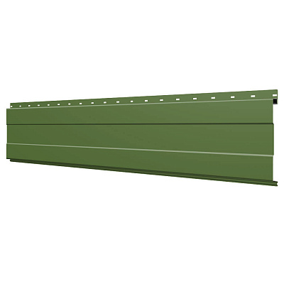 Линеарная потолочно-стеновая панель с ПОЛОСОЙ усиленная цвет RAL6002 Зеленый Лист применяется в качестве софитов для подшивы крыши, наружной и внутренней отделки потолков, стен, фронтонов фасада дома в Усть-Каменогорске.