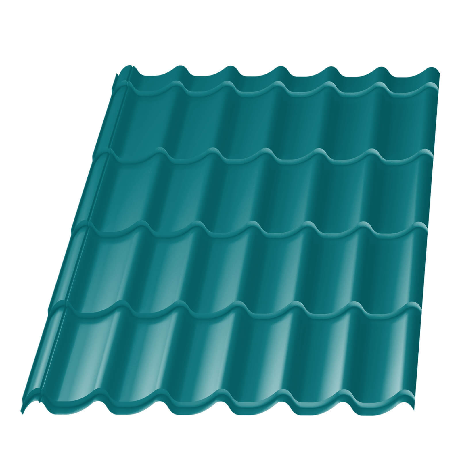 Металлическая черепица Меркурий цвет RAL 5021 Морская Волна имеет профиль внешне на кровле напоминающий классическую керамическую черепицу. Меркурий — это обновленный аналог профиля металлической черепицы для кровли крыши. Форма профиля имеет богатый внешний вид напоминающий небольшие набегающие волны. Лучшие показатели герметизации сделали профиль Меркурий гарантом стабильной и долговременной службы на крышах в Усть-Каменогорске. Данный профиль отличается не только своим качеством и практичностью, но и благородным внешним видом.