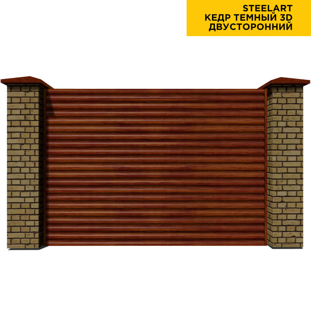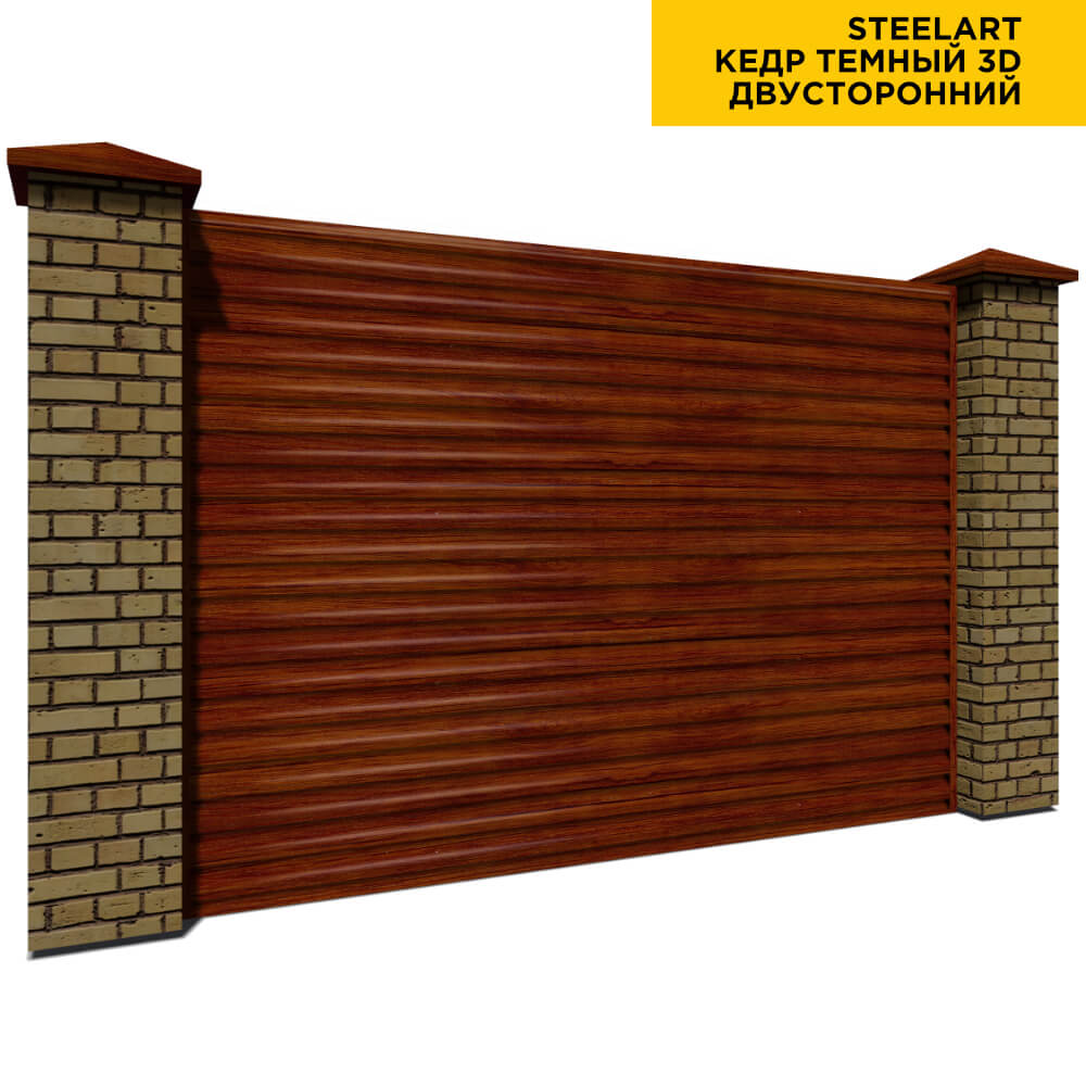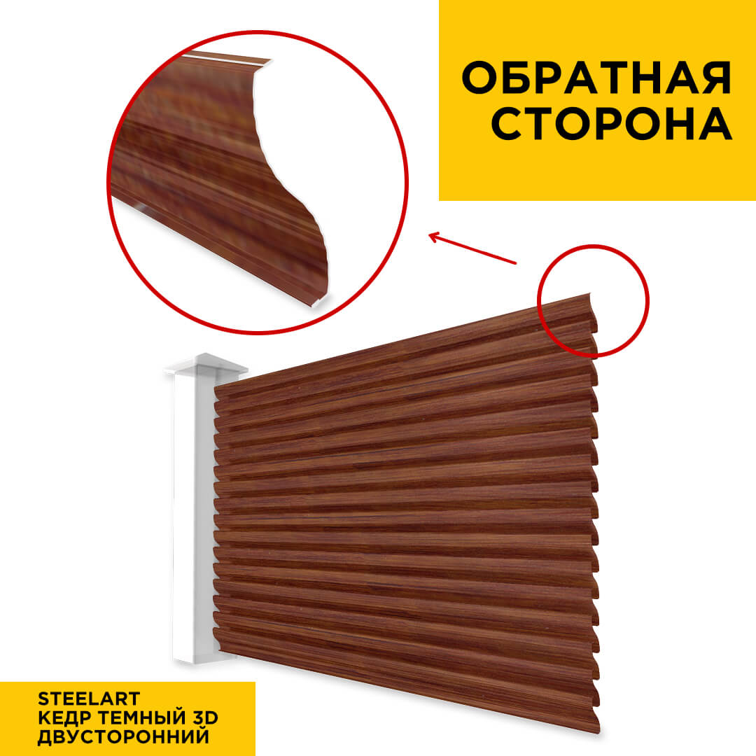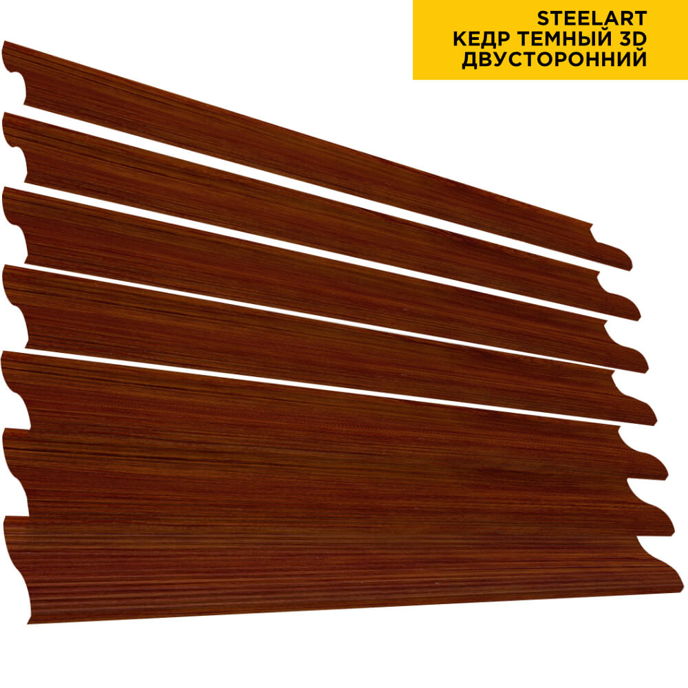 Ламель Еврожалюзи металлическая S-образная, цвет под дерево Кедр Темный 3D SteelArt Россия двухстороннее покрытие, длина любая кратно 1см под заказ - для забора-жалюзи, беседки, перголы в Усть-Каменогорске