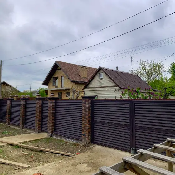 Наши заборы – это не только надежная защита участка, но и стильный элемент оформления территории. На фото представлен готовый объект с ламелями типа «Реснички» с матовым покрытием MATTE в цвете RAL 8019 Темный Шоколад. Такой забор одинаково эстетично выглядит как со стороны улицы, так и со двора, подчеркивая единый архитектурный стиль и гармонично вписываясь в окружающий ландшафт. Благодаря двустороннему исполнению он выгодно отличается от стандартных решений: соседям и хозяевам открывается одинаково аккуратный и современный вид. Матовая поверхность в сочетании с глубоким шоколадным тоном придает конструкции премиальный и солидный вид, делая участок по-настоящему уютным и ухоженным.